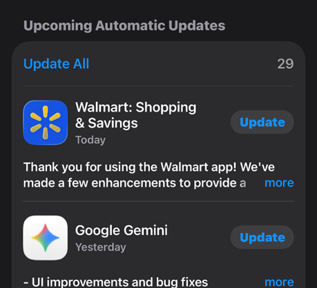 4.모든 앱 업데이트가 자동으로 시작됩니다.
